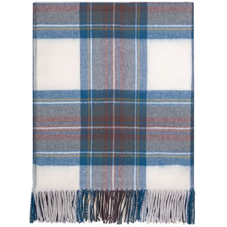 The Stewart Blue Dress Tartan Lochcarron Lambswool Blanket is soft brown based check with natural overchecks. It is an ideal accessory to dress your home beautifully. Perfect for a cold winter's evening or alternatively, superb for use in the summer as a picnic rug. Made from 100% lambswool at our Selkirk mill the blanket combines traditional craftsmanship and quality. Why not inject a little Scottish personality into your interior style.
