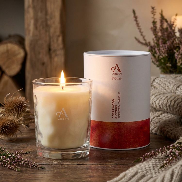 The Arran Aromatic Cedarwood and Citrus Candle has a wonderful fragrance of herbaceous lavindin, blended with bay, cedar, patchouli and citrus, filling your home with an uplifting mood.