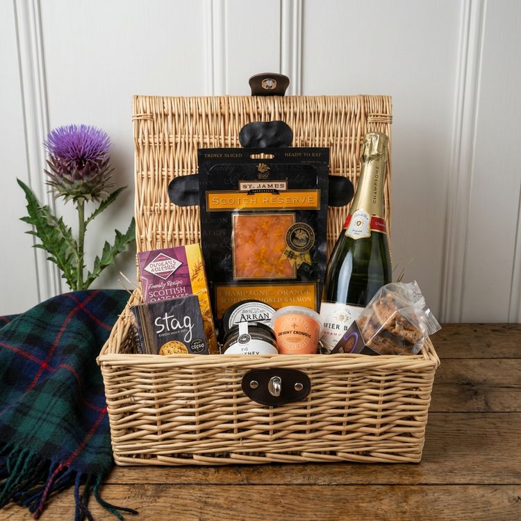 Enjoy the summer sun with this sumptuous Scottish hamper, complete with a fantastic bottle of bubbly to kickstart your celebrations! Including some delicious local produce, this hamper is perfect for a lunch outdoors.