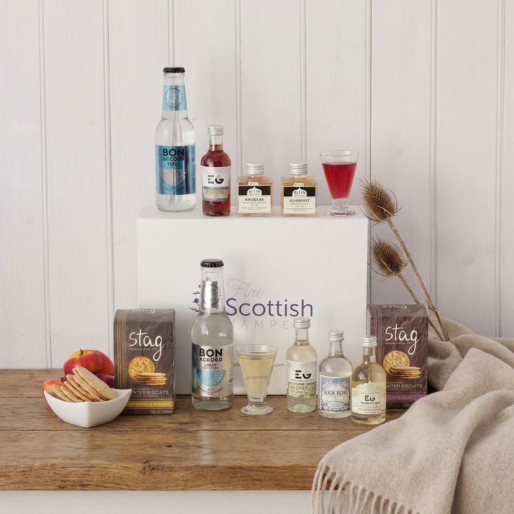 The perfect gift for a gin lover, this great selection of gins offers your recipient a real taste of Scottish gin. To accompany these gin’s we have put together a selection of deluxe savoury biscuits that work perfectly with these gins. It’s a wonderful present for any gin connoisseur, allowing them to sample some of the finest gins of Scotland, and is presented in your choice of hamper.