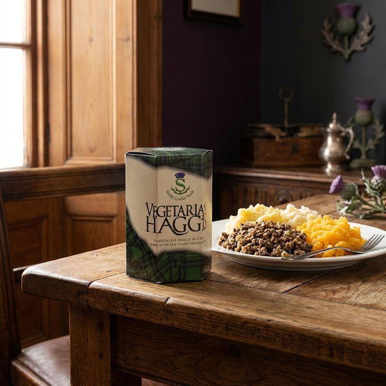 A blend of oatmeal, mixed vegetables and spices with a synthetic skin, let no one be left out at a Burns Supper with this ingenious addition to Stahly's classic Scottish haggis range.