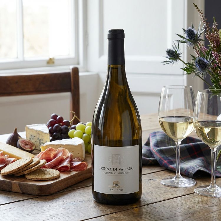 The Valiano “Donna di Valiano” Chardonnay is pure Tuscan charm — smooth, bright, and layered with flavors of ripe pear, golden apple, and a hint of vanilla from gentle oak aging.
